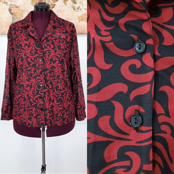 Vintage Tops Vtg 7s Swirl Pattern Black Red Blouse Bedford Fair