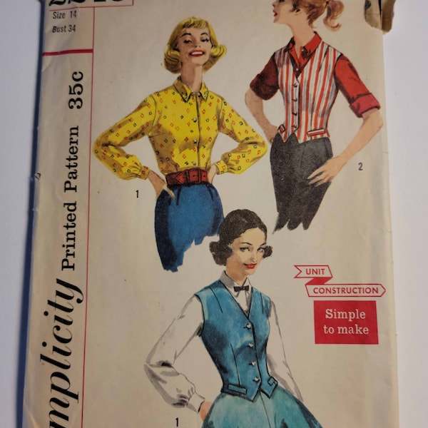 1960s Fitted Blouse and Weskit Simplicity 6531 Vintage Sewing Etsy