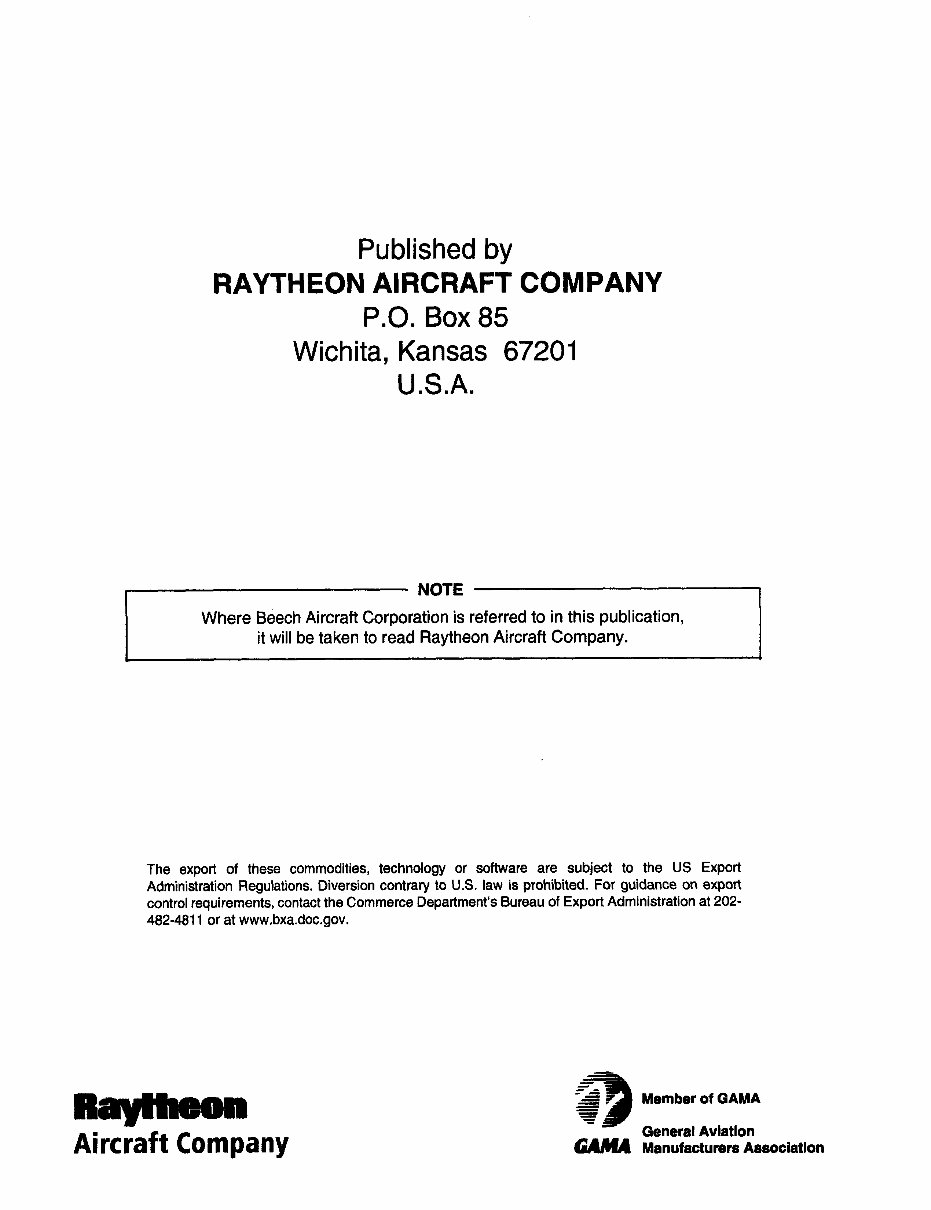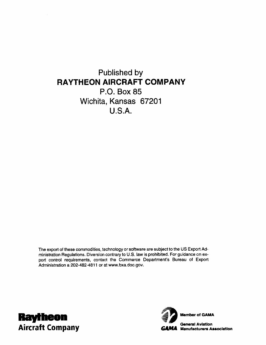 Beechcraft Baron 9555 and 95A55 Pilot's Operating Handbook 55590000