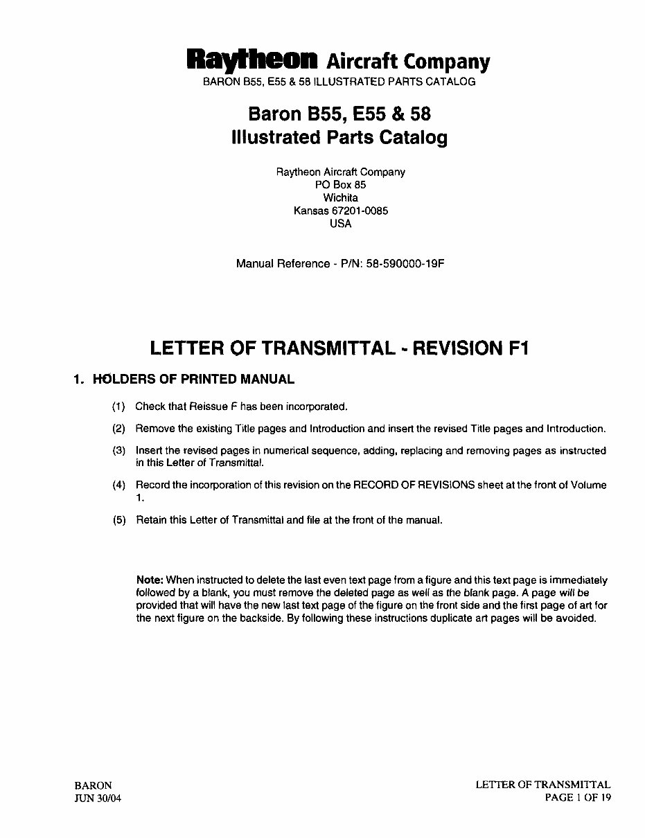 Beechcraft Baron B55 E55 58 Illustrated Parts Catalog Helicopter Manuals