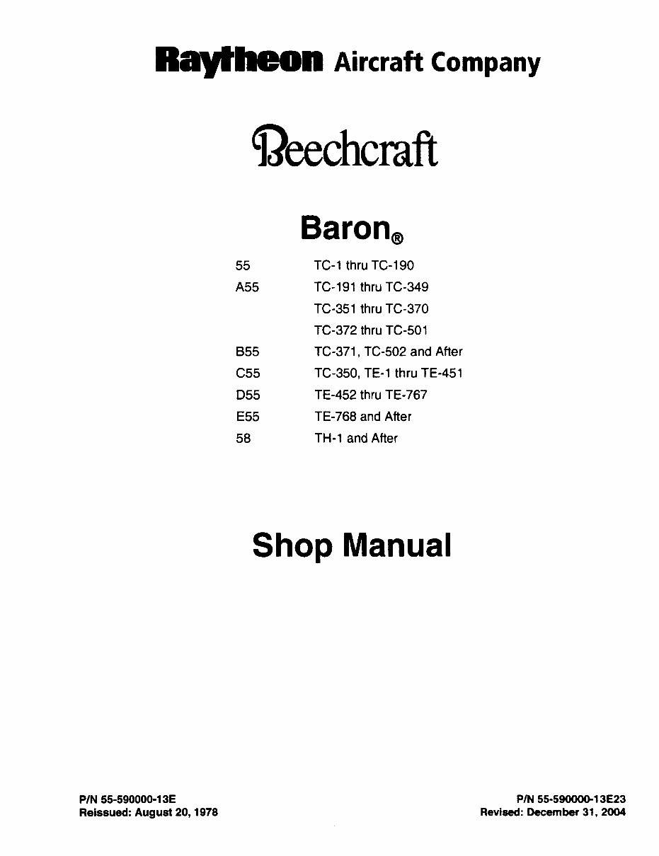 Beechcraft Baron 55 Series Service Manual Shop Manual