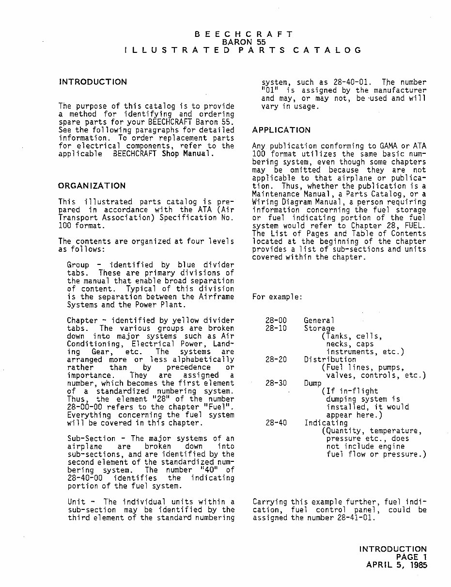 Beechcraft Baron 55 Series Illustrated Parts Catalog Download