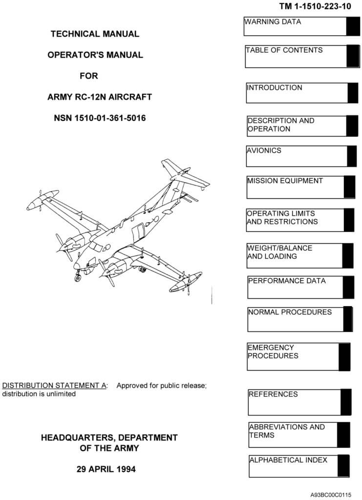 Beechcraft C12 R Aircraft Operator's Manual TM 1151022510