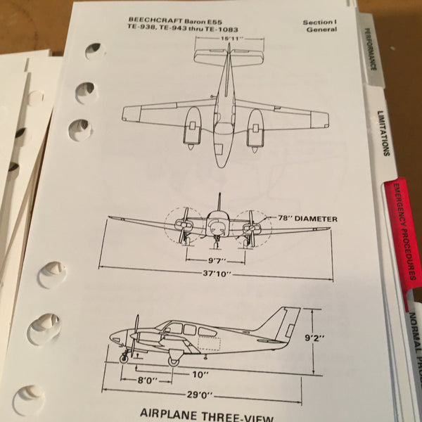 Beechcraft Baron E55 and E55A Pilot's Operating Handbook. sn TE1084 a