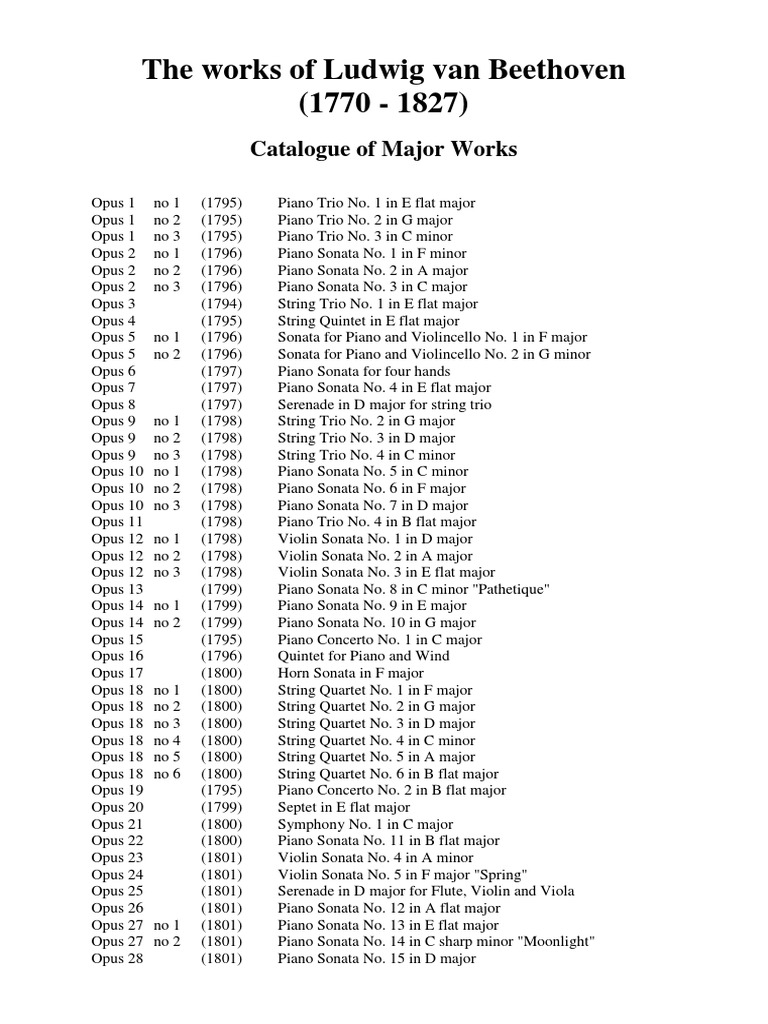 Beethoven S Work Catalog PDF Opus Number Music