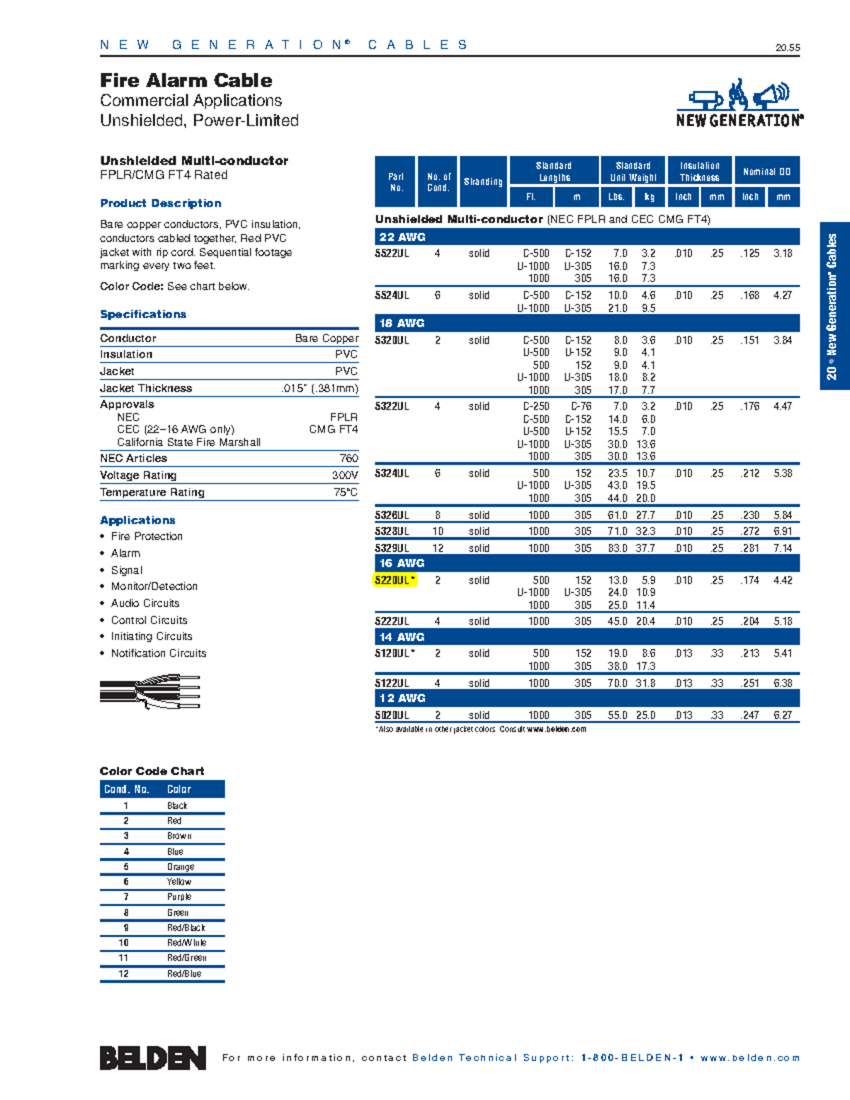 Belden Fire alarm cables 20 • New Generation ®Cables Unshielded Multi