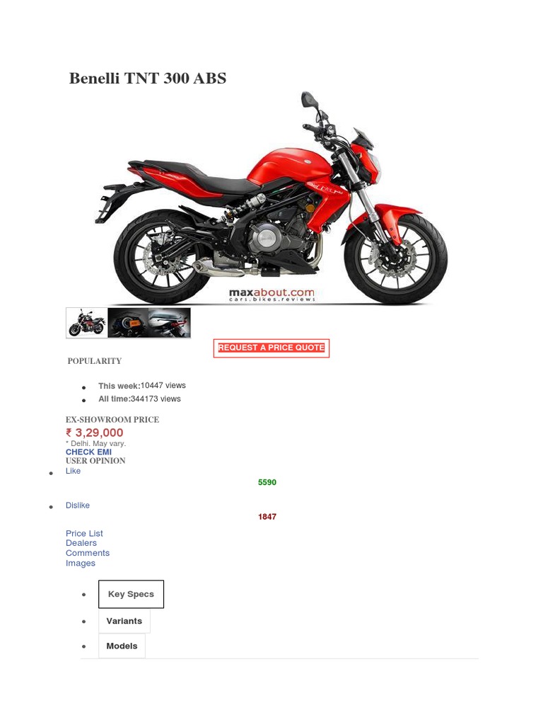 Benelli TNT 300 Motorcycle Price, Specs and Features Bikes4Sale