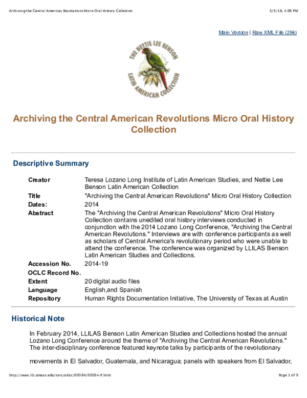 (PDF) "Archiving the Central American Revolutions." Micro Oral History