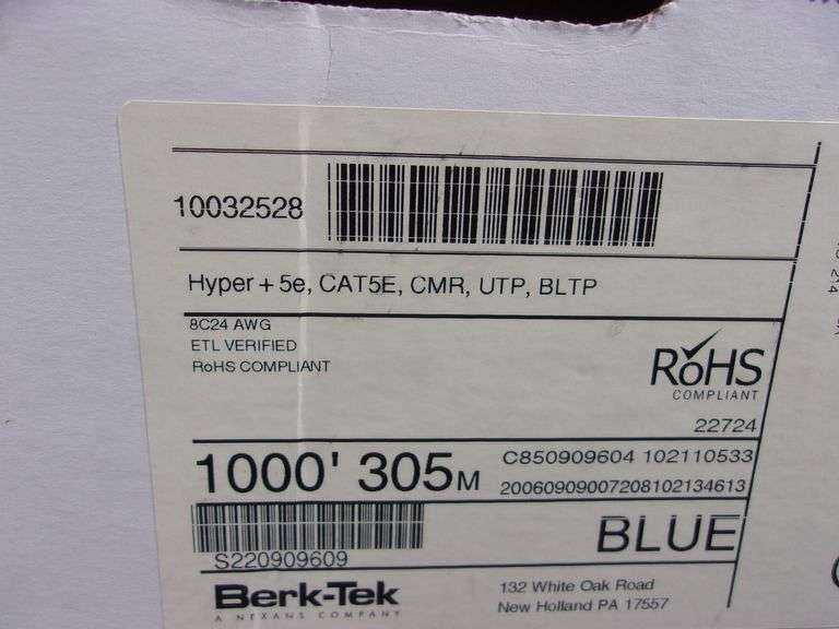 BERKTEK Hyper Plus 5e Cat 5e UTP Cable 1000' Blue 10032227 PayWut