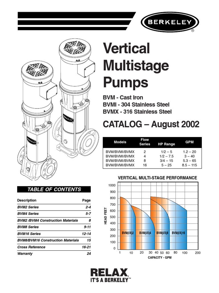 Berkeley Vertical Multi Stage Pumps Catalog 08 02 PDF Gallon
