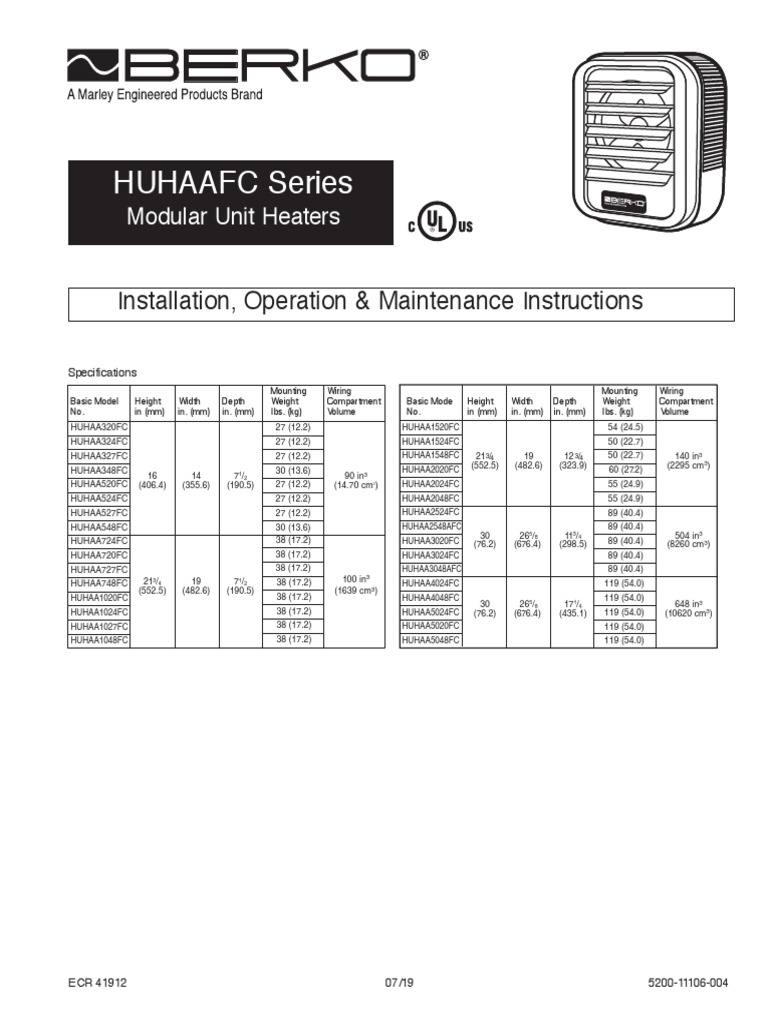 Berko Berko HUH Unit Heater Activation Packet Marley Engineered Products