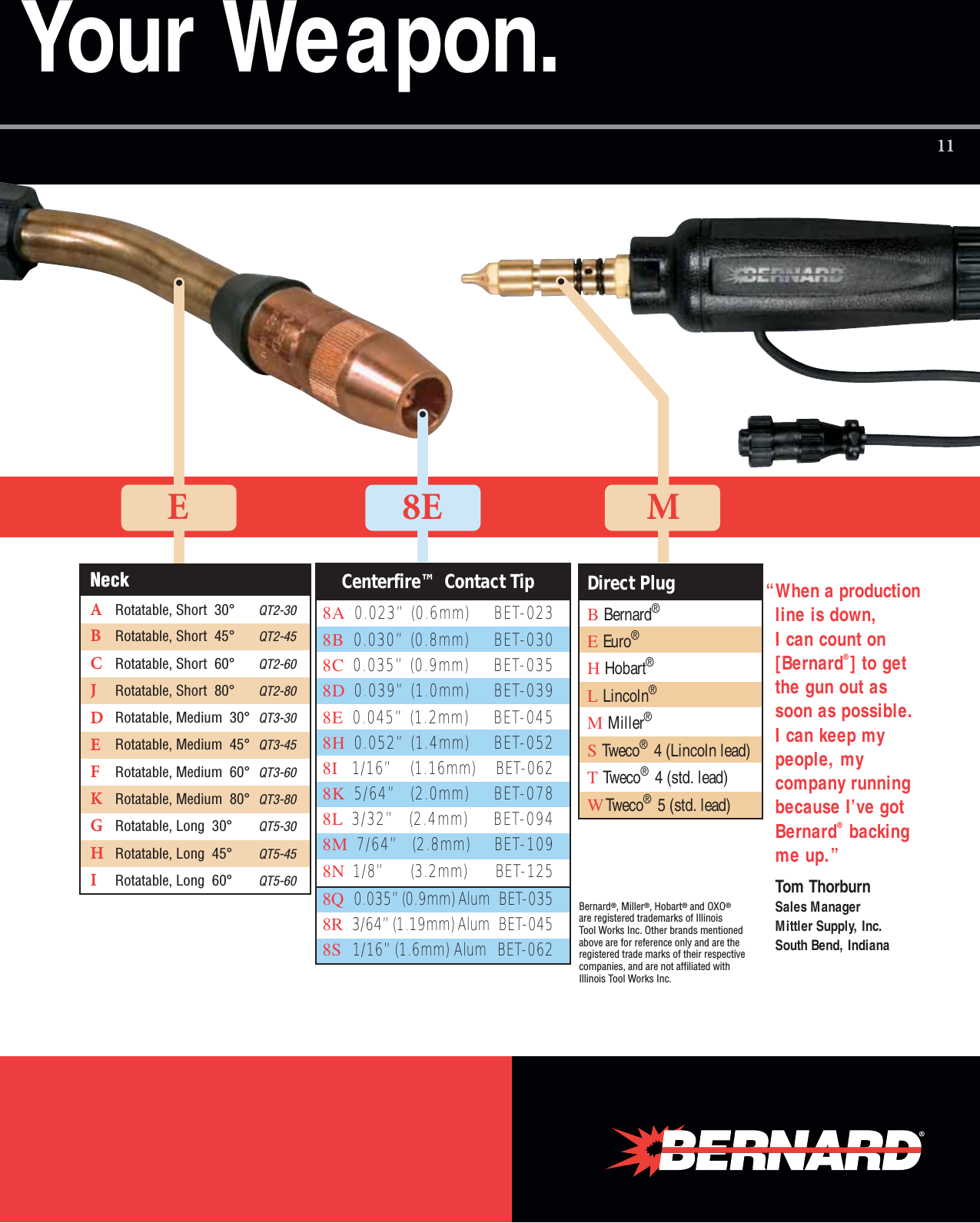 Bernard® BTB Series AirCooled MIG Welding Gun Miller