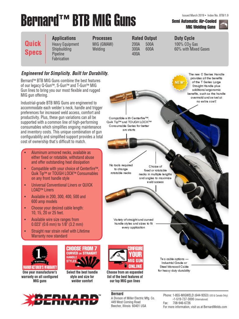 Bernard Updates SemiAutomatic MIG Guns and Consumables Catalog