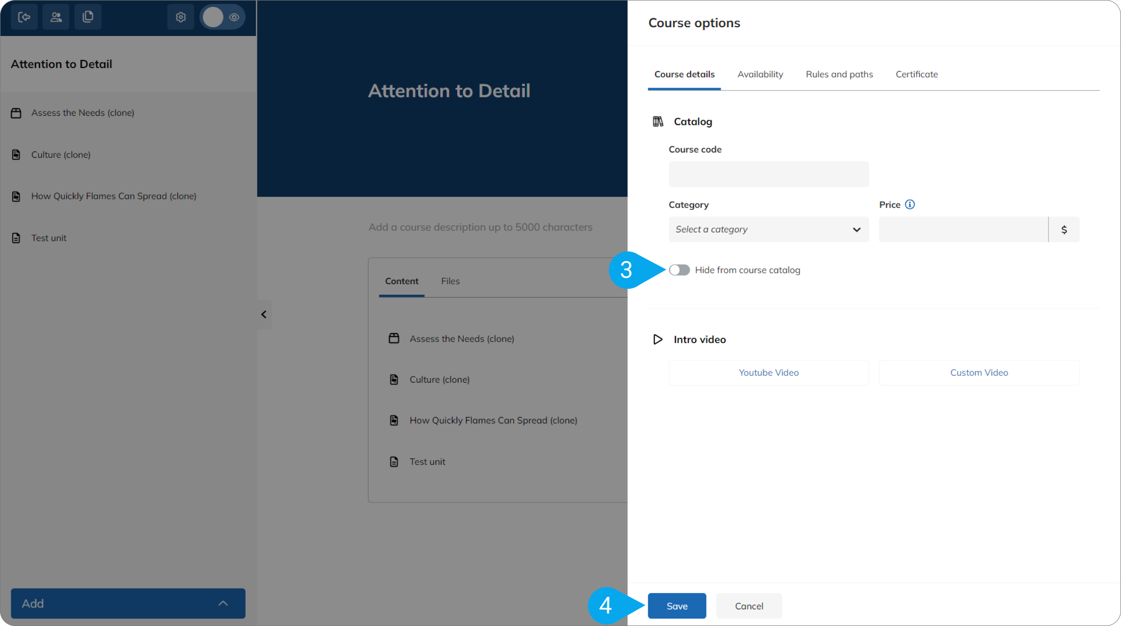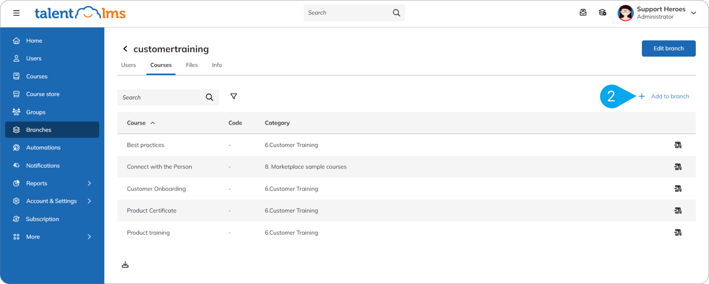 How to hide branch courses from the main catalog in TalentLMS