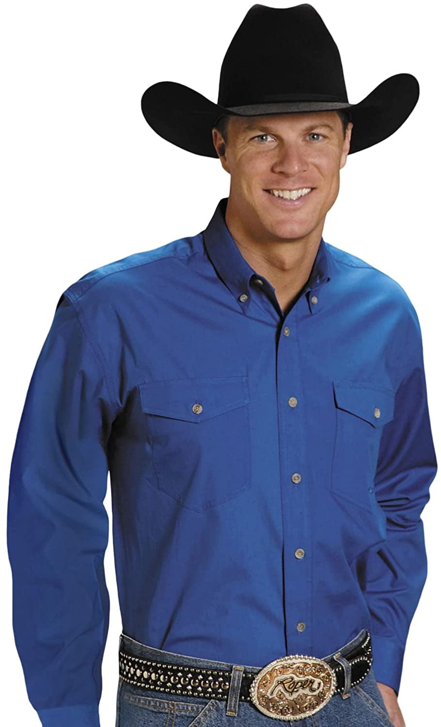 Roper Mens Solid Poplin Long Sleeve Western Shirt Big and Tall 3XLarge