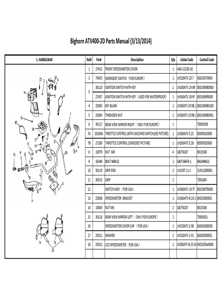 Bighorn ATV4002D Parts Manual PDF Gear Headlamp