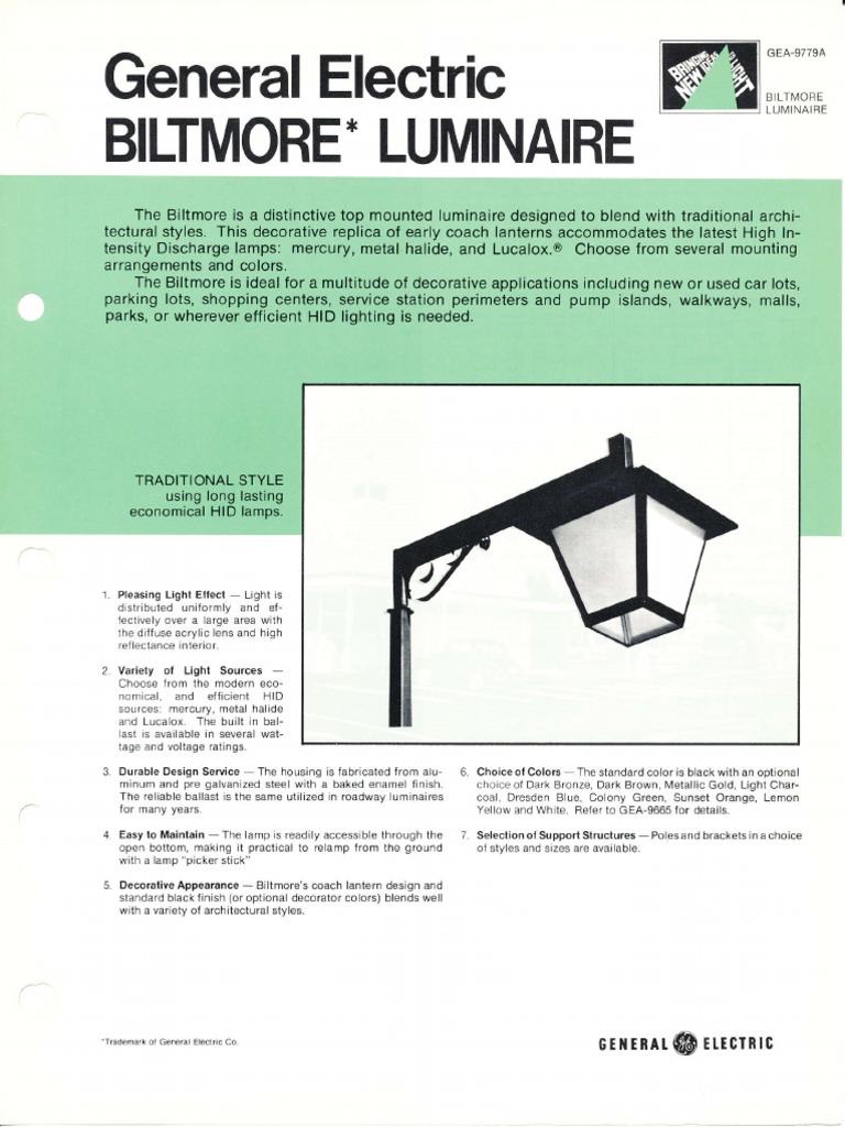 GE Lighting Systems Biltmore Series Spec Sheet 1273 PDF