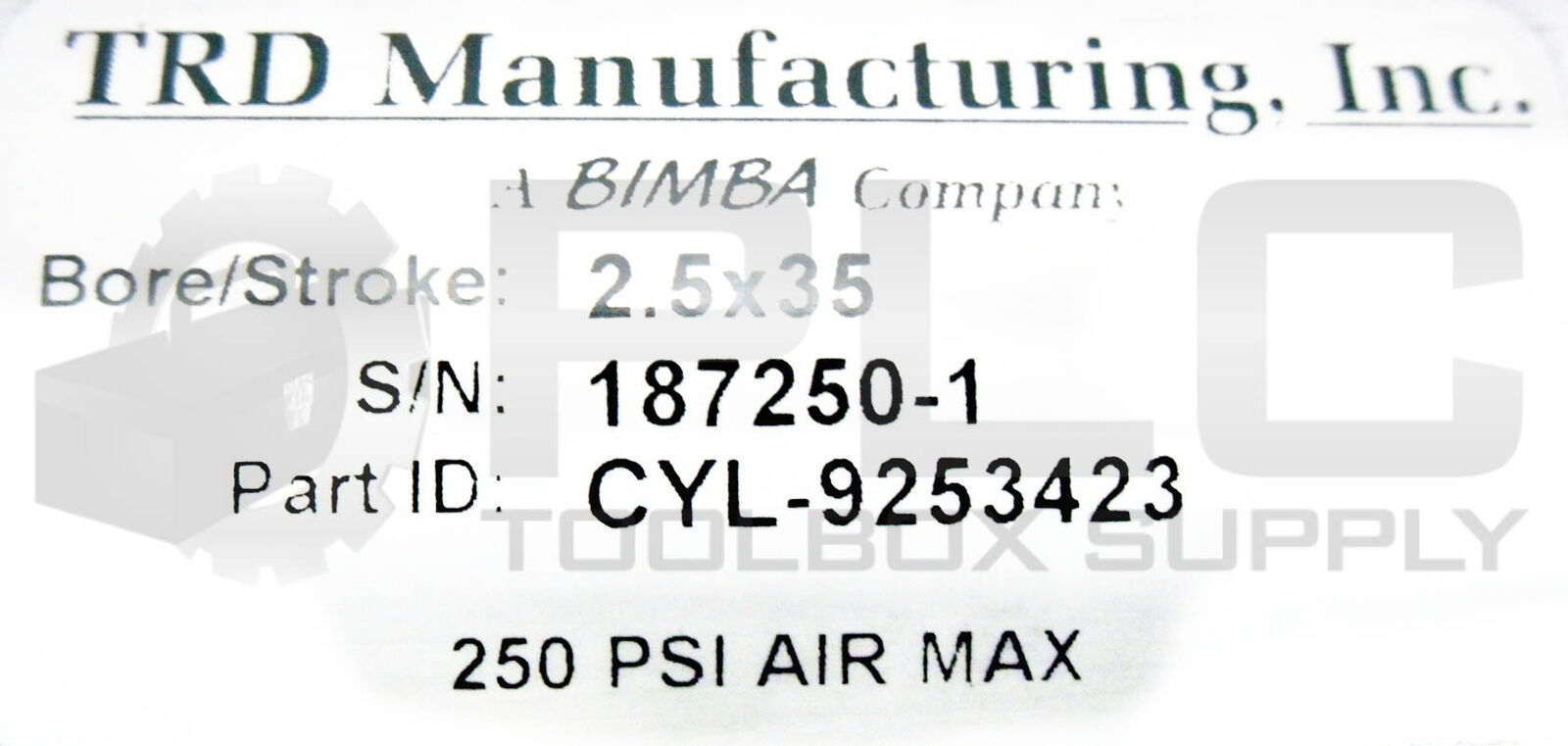 NEW BIMBA TRD CYL9253423 PNEUMATIC CYLINDER BORE/STROKE 2.5 X 35