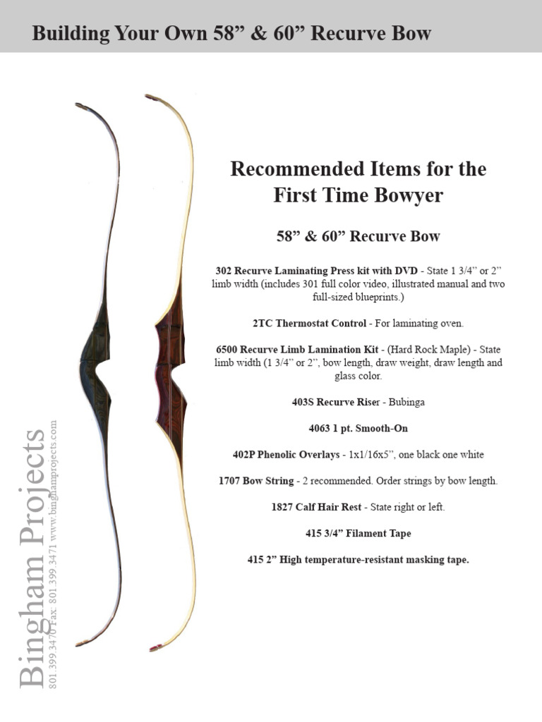 Building your own 58" or 60" Recurve Bow By Bingham Projects eBay