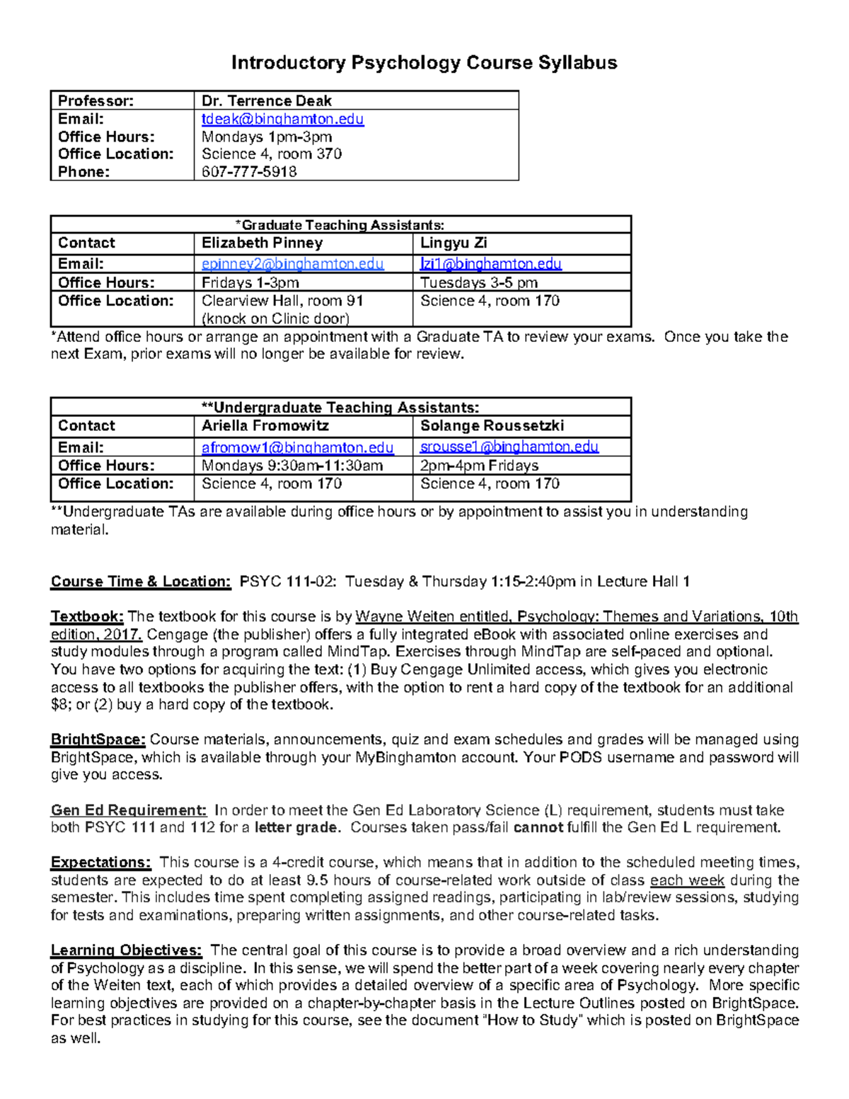 Psych Syllabus Fall 2021 for Binghamton University Introductory
