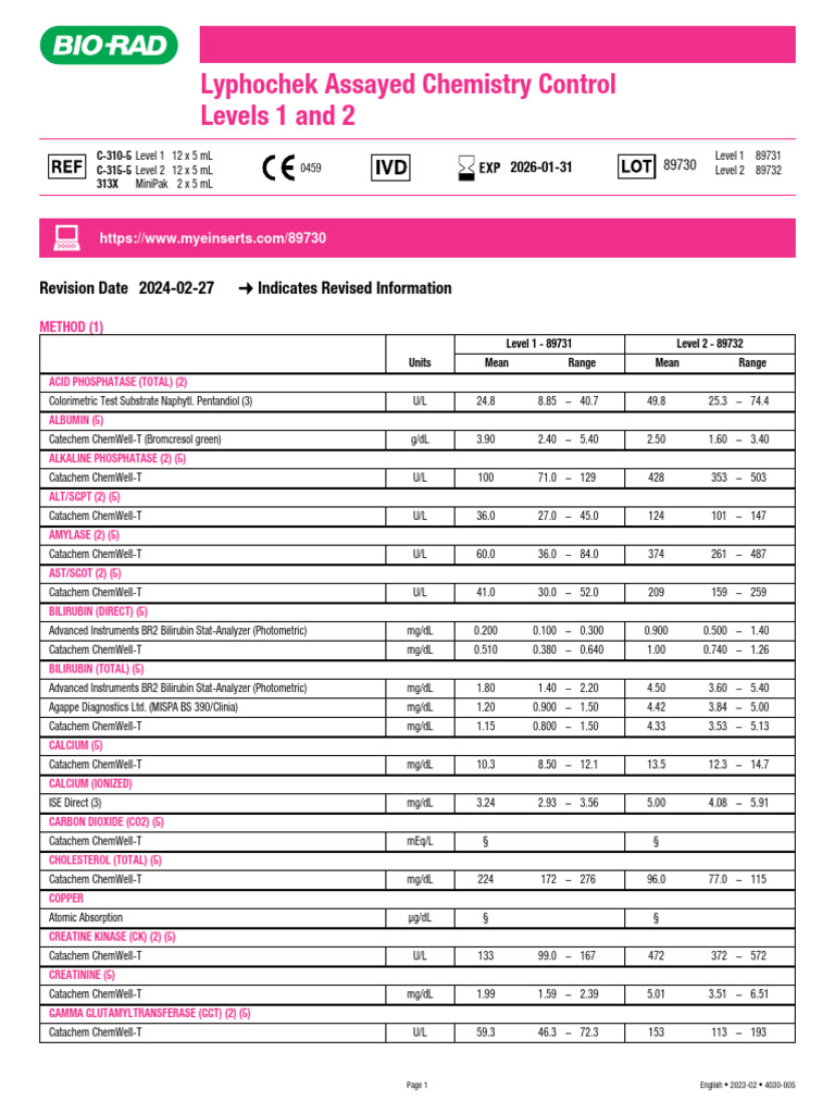 Biorad Control_89730 L2 PDF Alanine Transaminase Magnesium