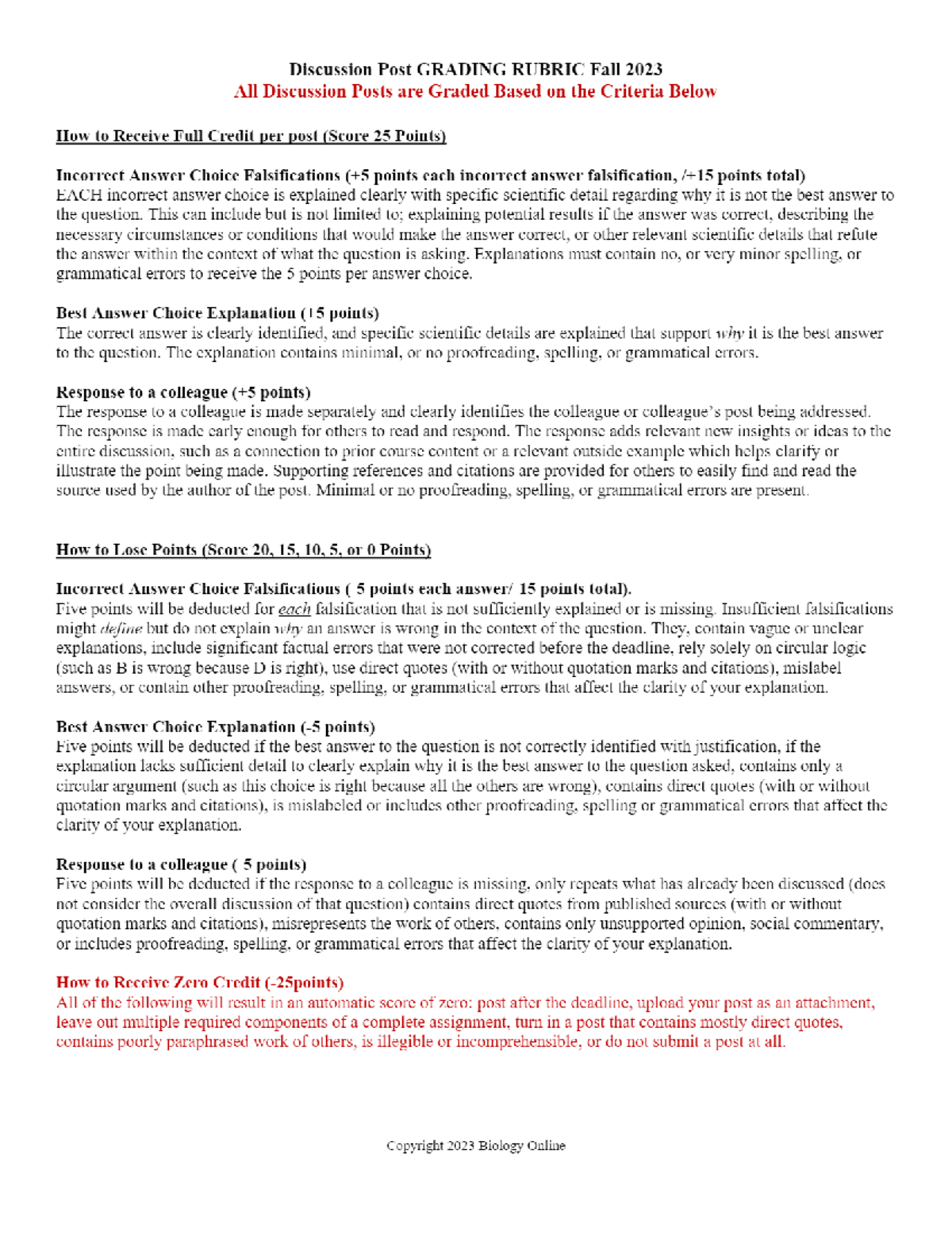BIO 361 Discussion Post Grading Rubric BIO 361 Studocu