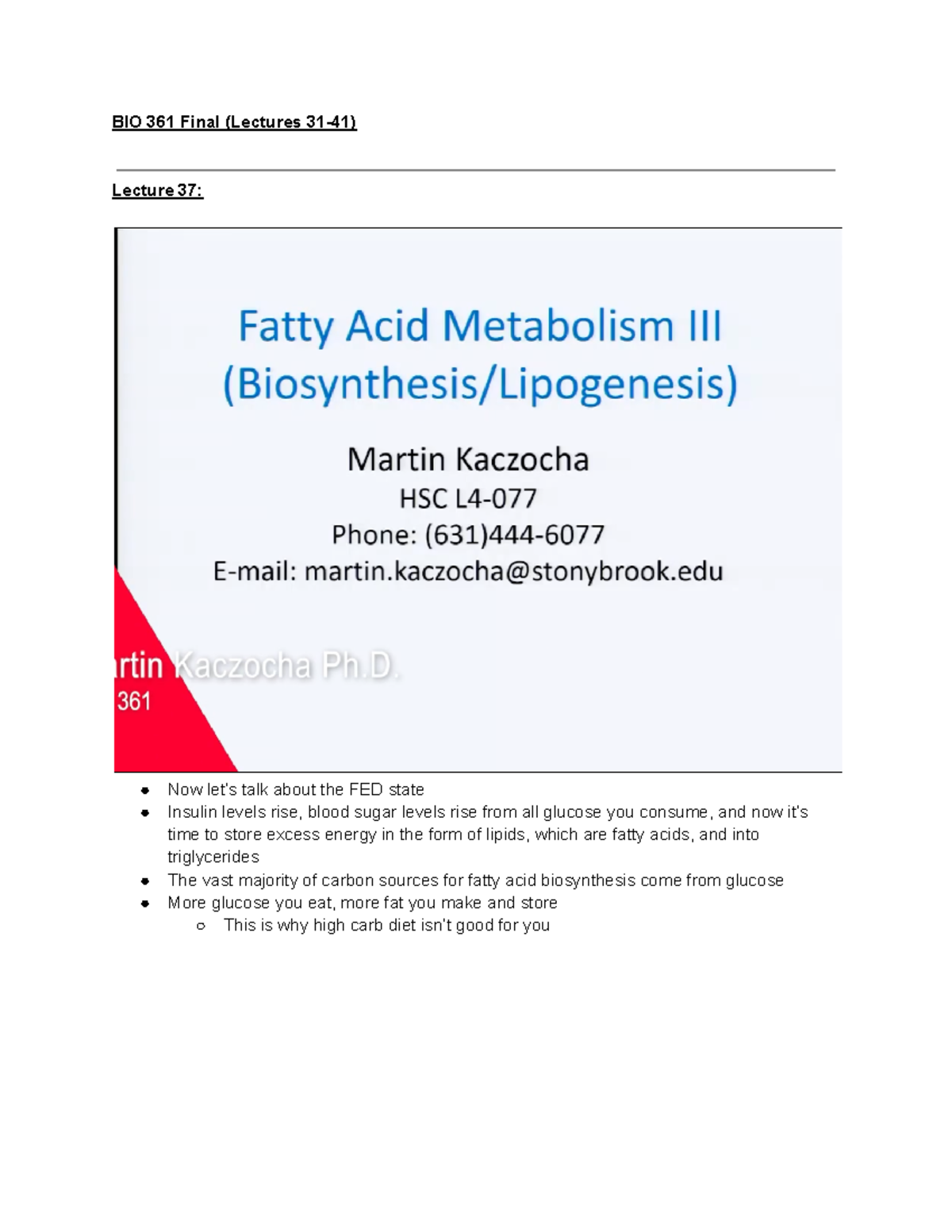 BIO 361 Complete Lecture Notes BIO 361 Final (Lectures 3141) Lecture