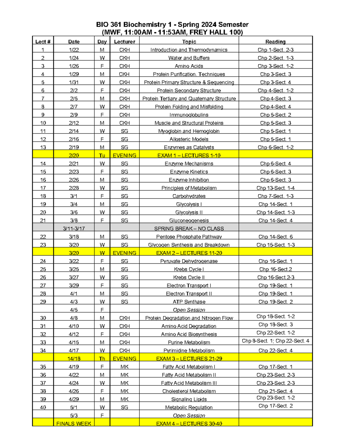 BIO361 Spring 2024 Syllabus and Course Schedule BIO 361 Biochemistry