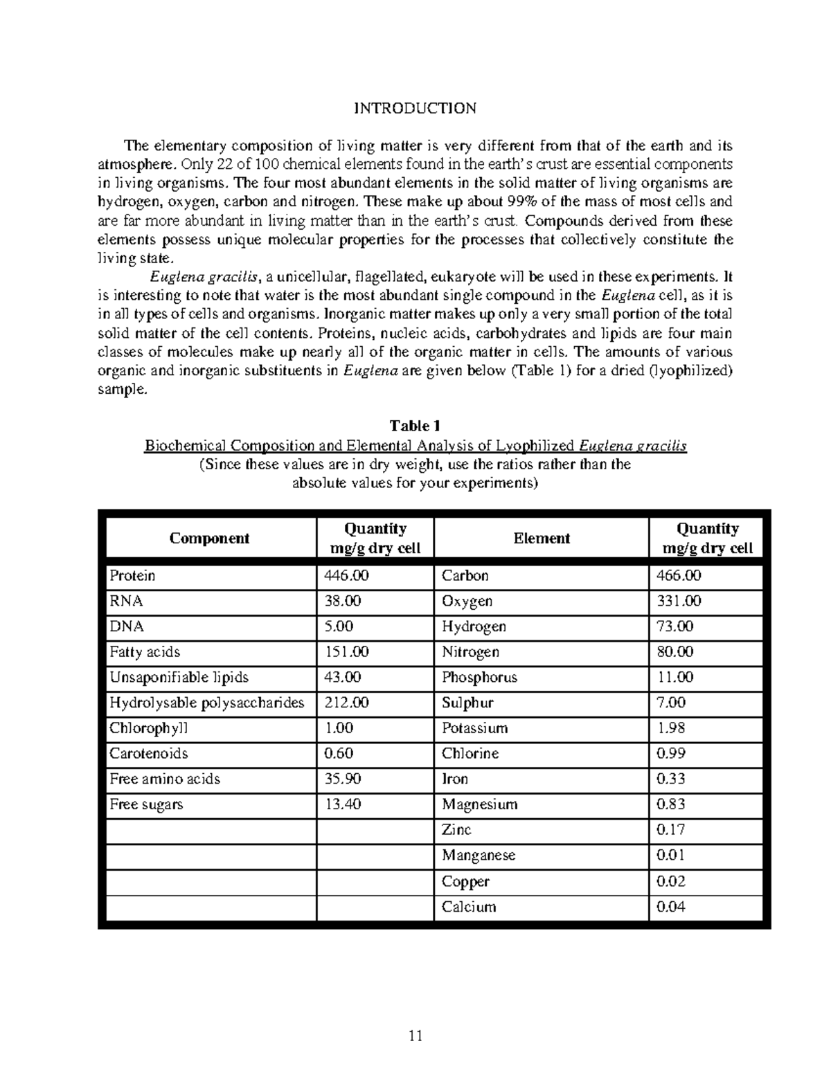 BIO 361Lab 1 Manual INTRODUCTION The elementary composition of