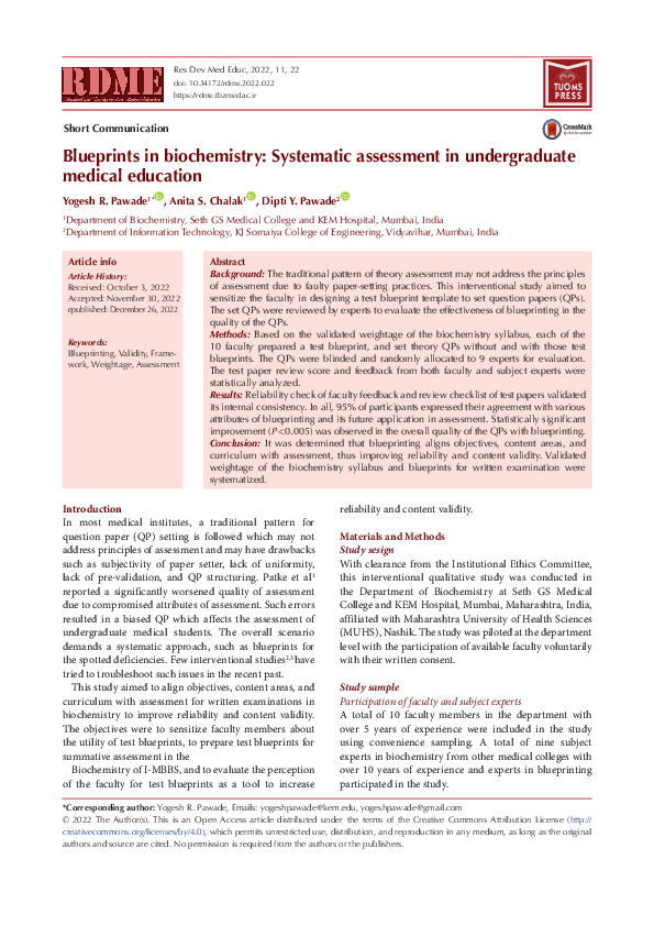 (PDF) Blueprints in biochemistry Systematic assessment in