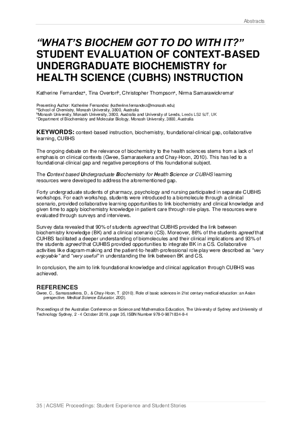 (PDF) “What’s Biochem got to do with it?” Student evaluation of context