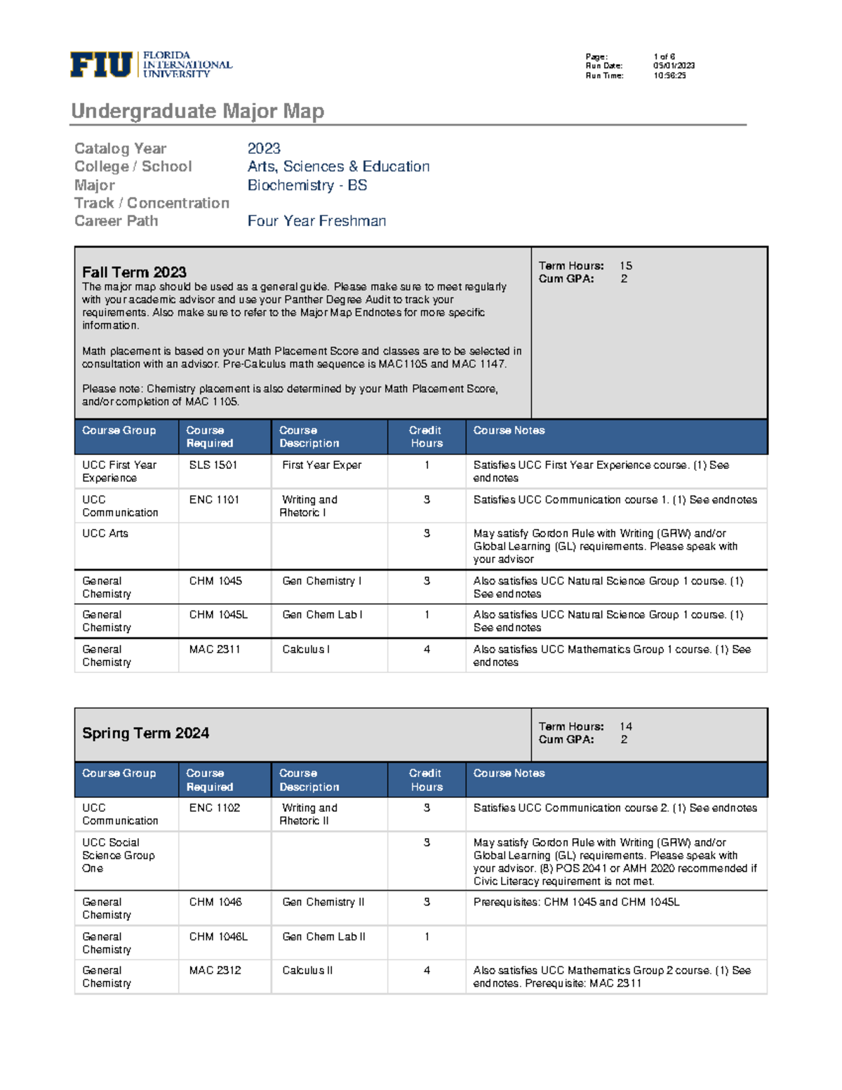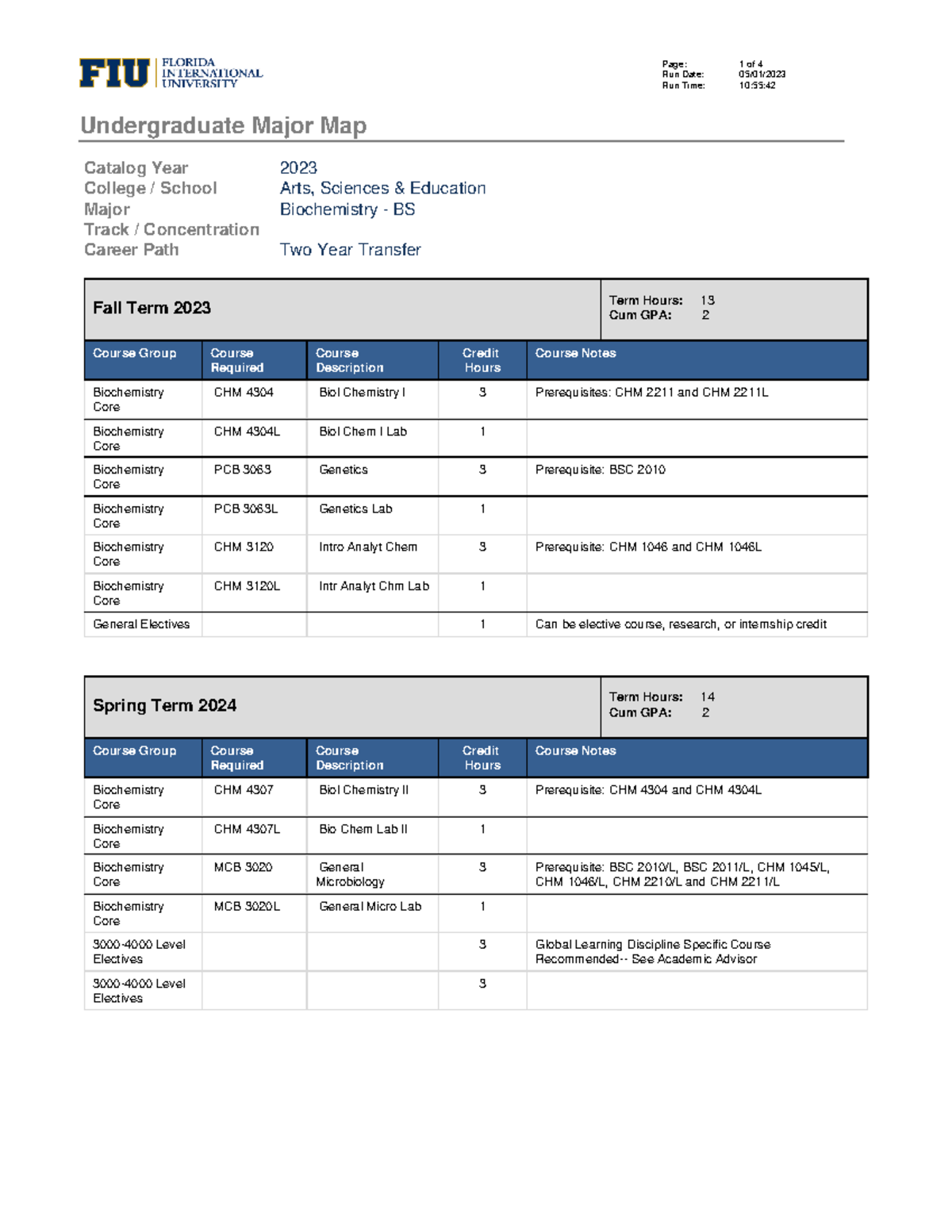 Biochemistry 4yearFreshman Run Date Run Time 05/01/ 1056
