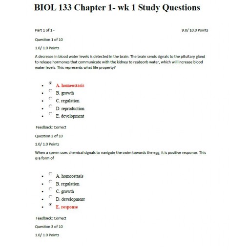 BIOL 133 General Biology I with Lab Course Assignemnt, Quiz, Exam