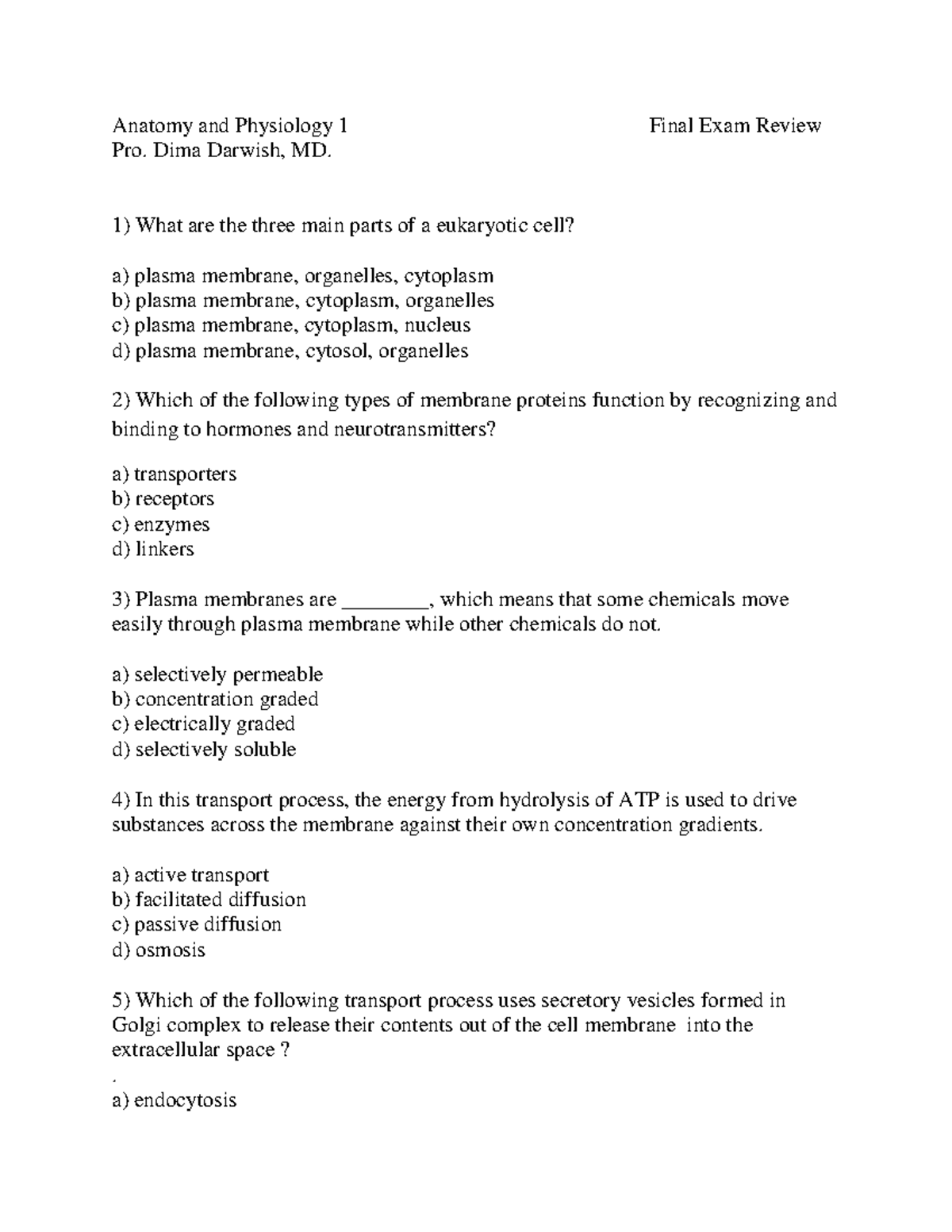 Final Exam Review A&P 2301 Lecture Open Ended Questions FINAL EXAM