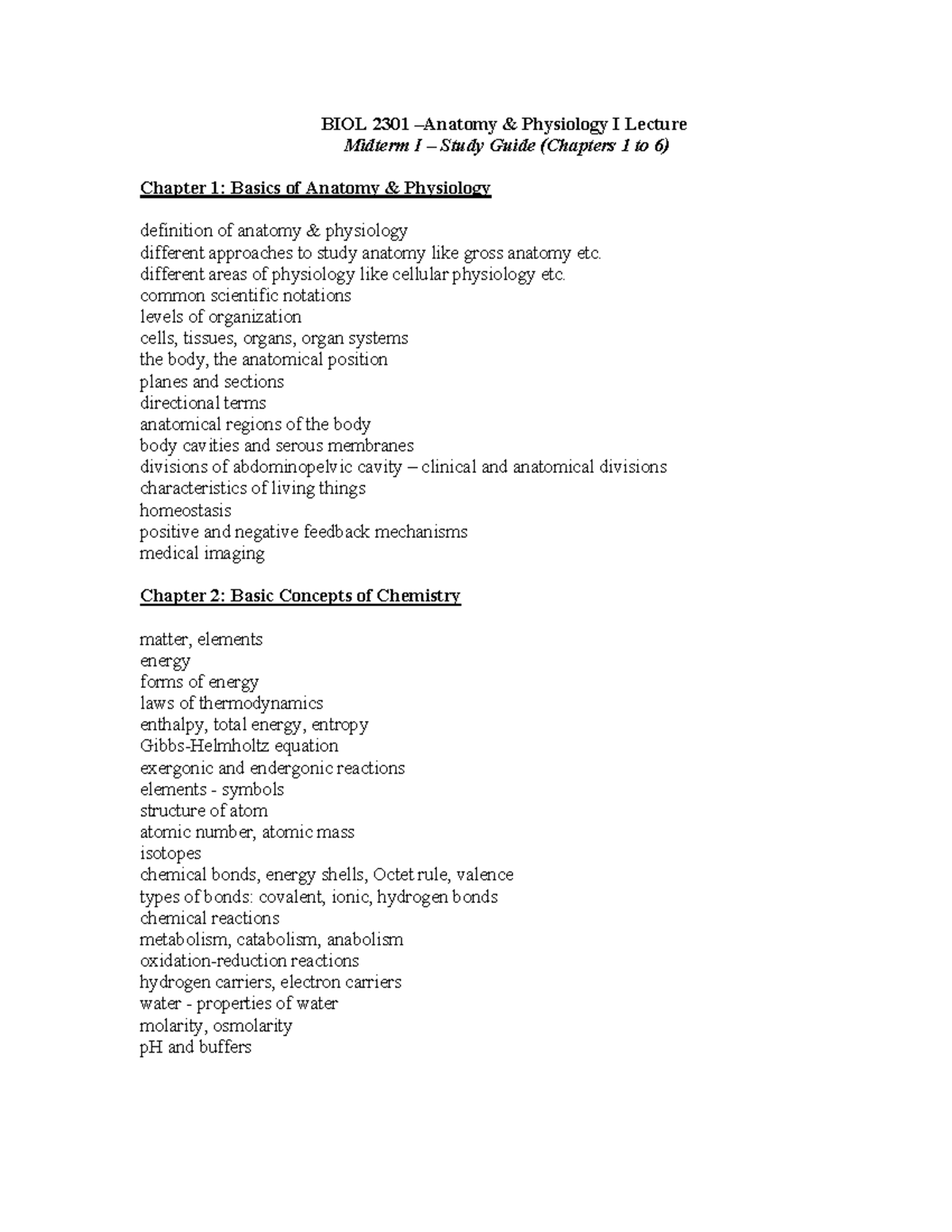 BIOL20230120Midterm20I20Study20Guide20 BIOL 2301 Anatomy