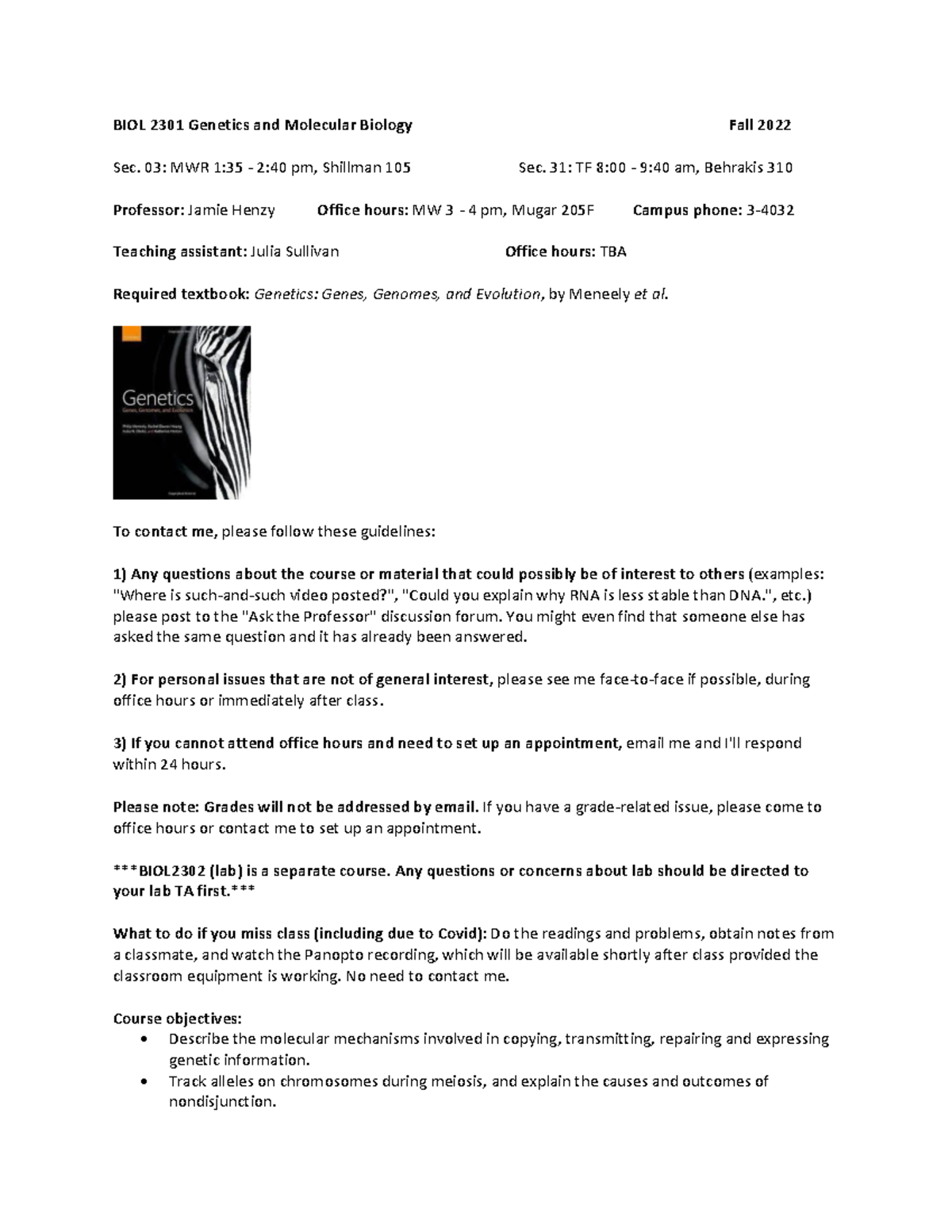 BIOL 2301 and Molecular Biology Fall 2022 Studocu