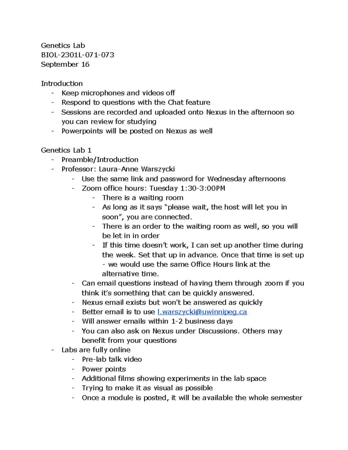 BIOL2301 Lab September 16 Lab BIOL2301L071 September 16