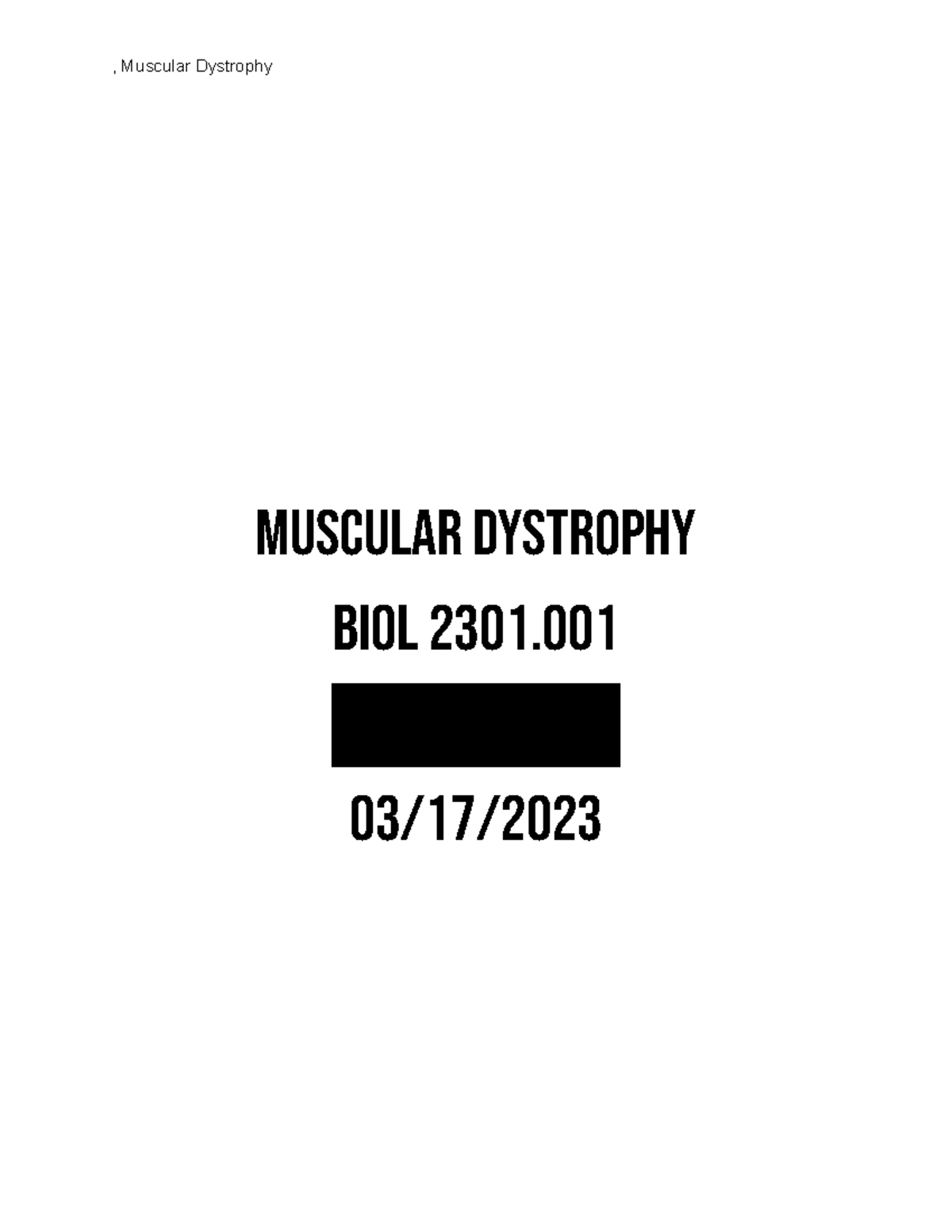 Muscular Dystrophy Disease Paper Muscular Dystrophy BIOL 2301