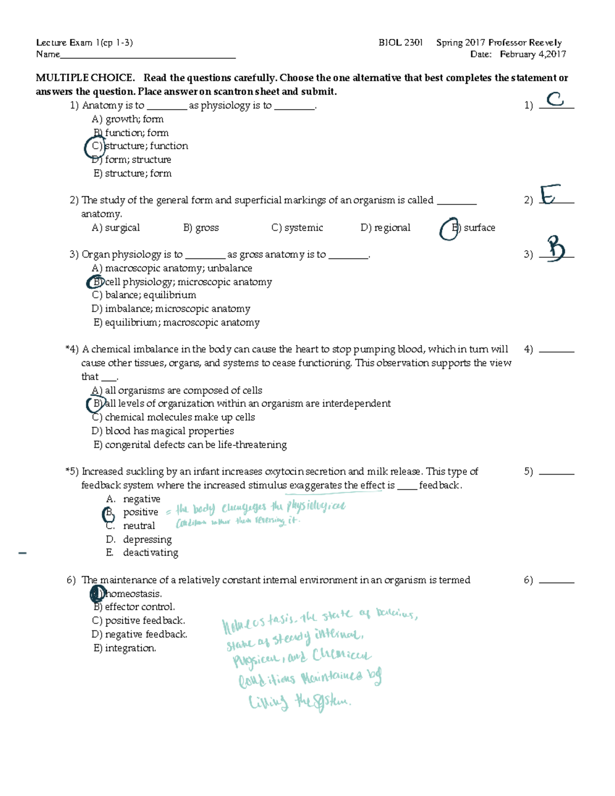 Exam 2 Practice Test KEY BIOL 2301 Studocu