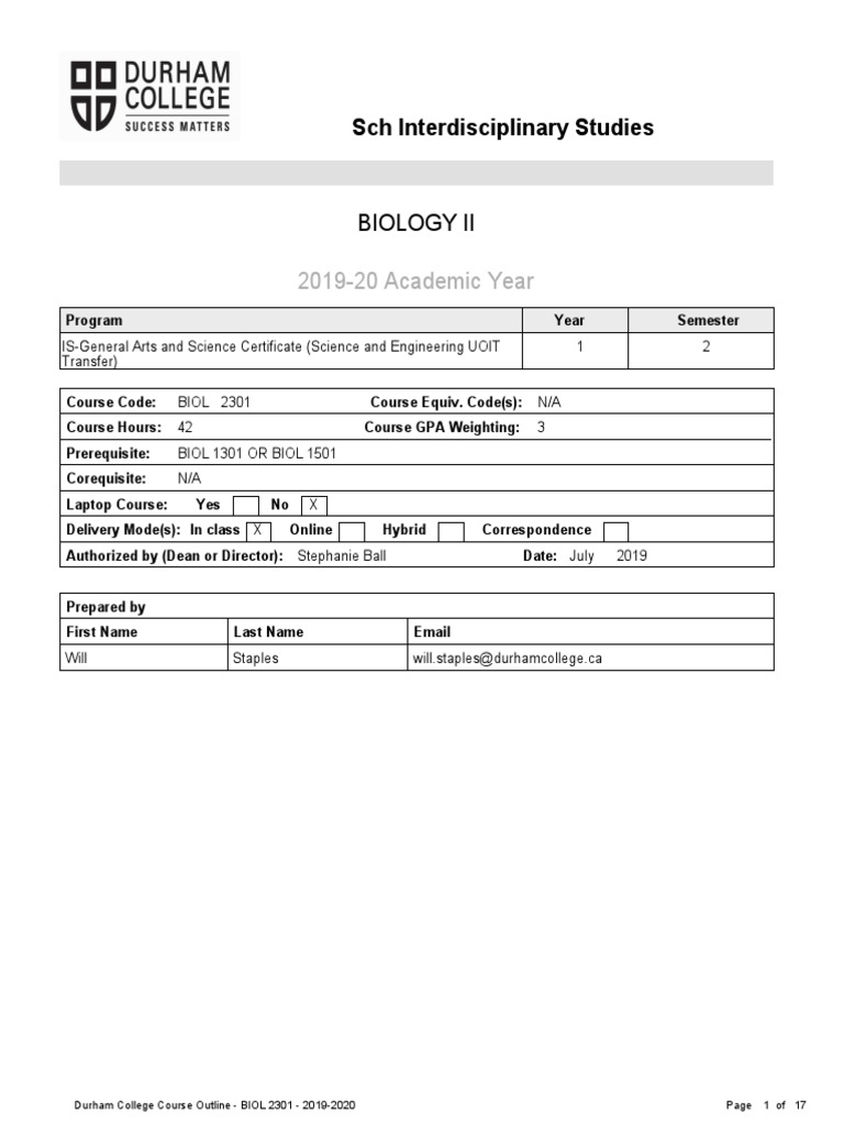 Biol 2301 2020 Download Free PDF Course Credit Turnitin