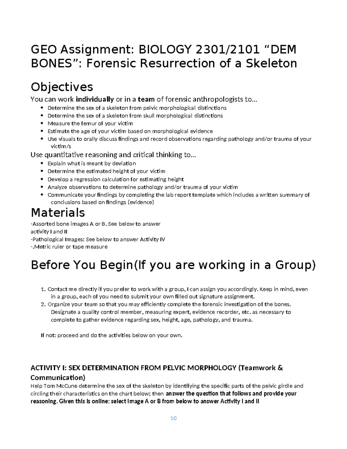 BIOL 2301 Signature Assignment Forensic Analysis of Skeletons Studocu