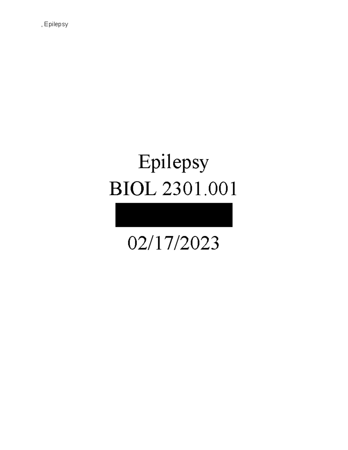 Epilepsy Disease Paper Epilepsy BIOL 2301. Ciana Bridges 02/17/ The