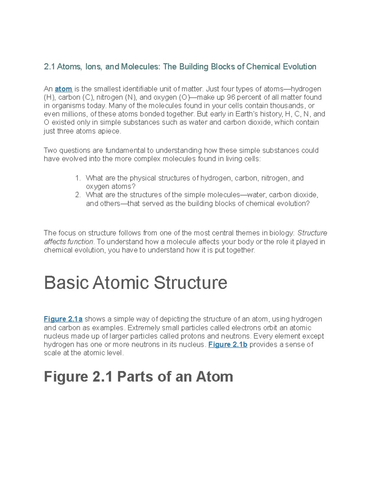 Bio 212 chapter notes 2 Atoms, Ions, and Molecules The Building