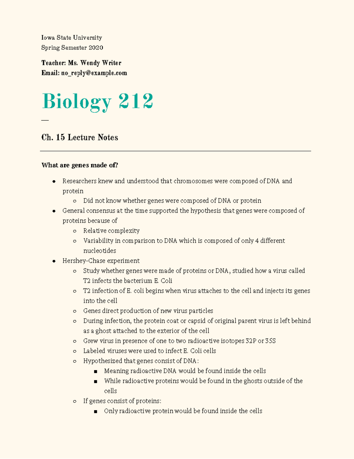 Ch. 15 Lecture Notes Iowa State University Spring Semester 2020