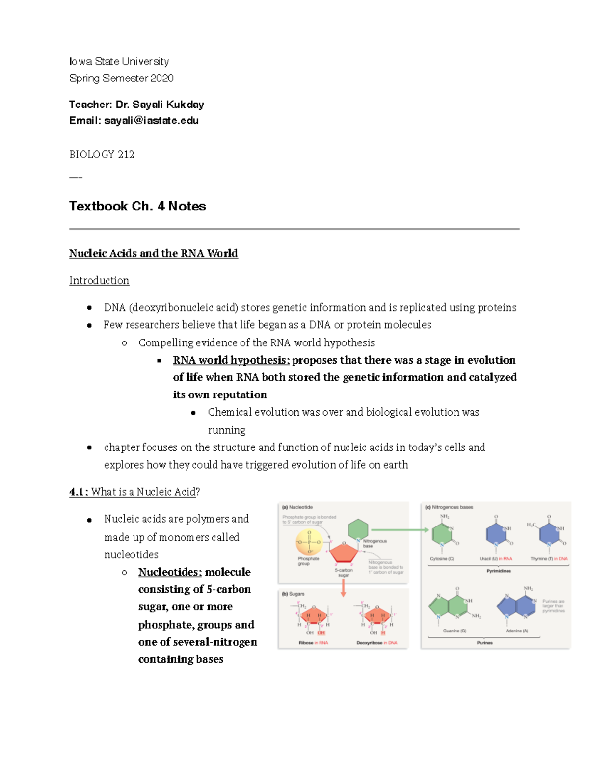 Bio. 212 Ch. 4 Notes Dr. Sayali Kukday Iowa State University Spring