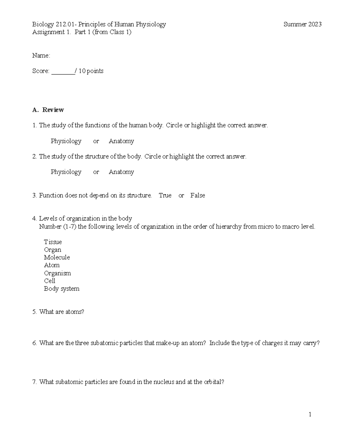 Biology 212 Assignment 1 Part 1 (summer 2023) BIOL 610 SFSU Studocu