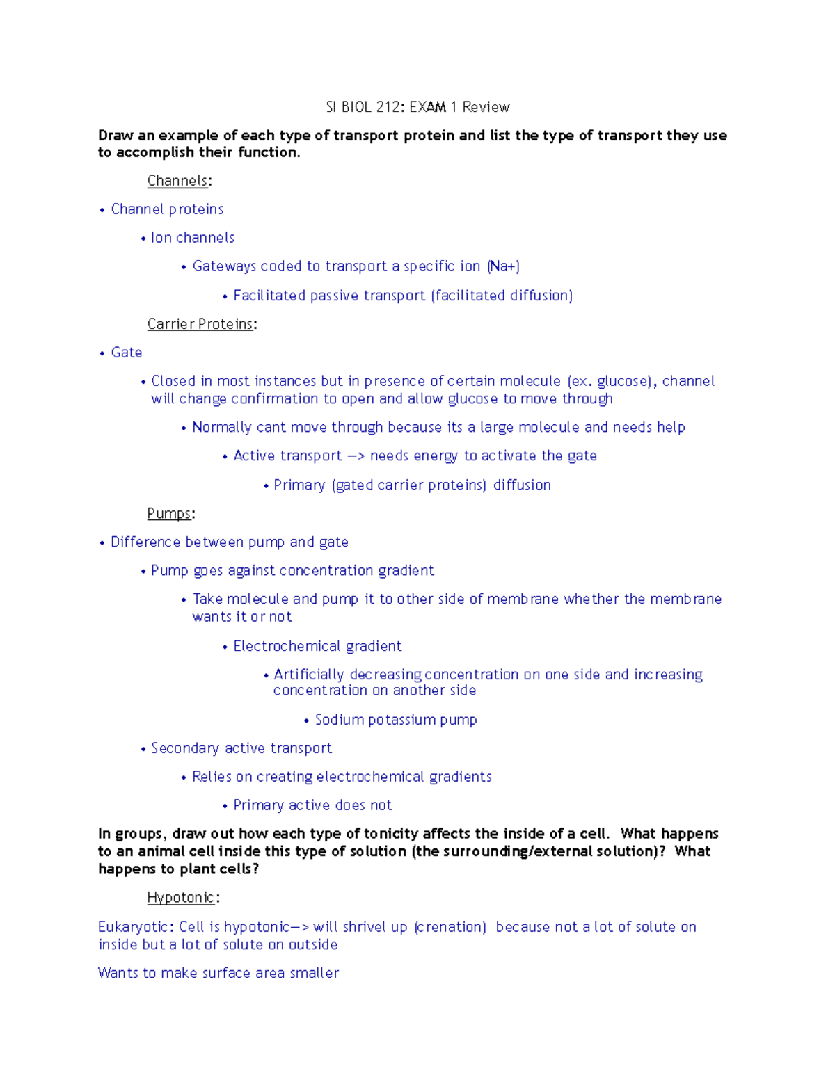 Exam 1 Review SI SI BIOL 212 EXAM 1 Review Draw an example of each
