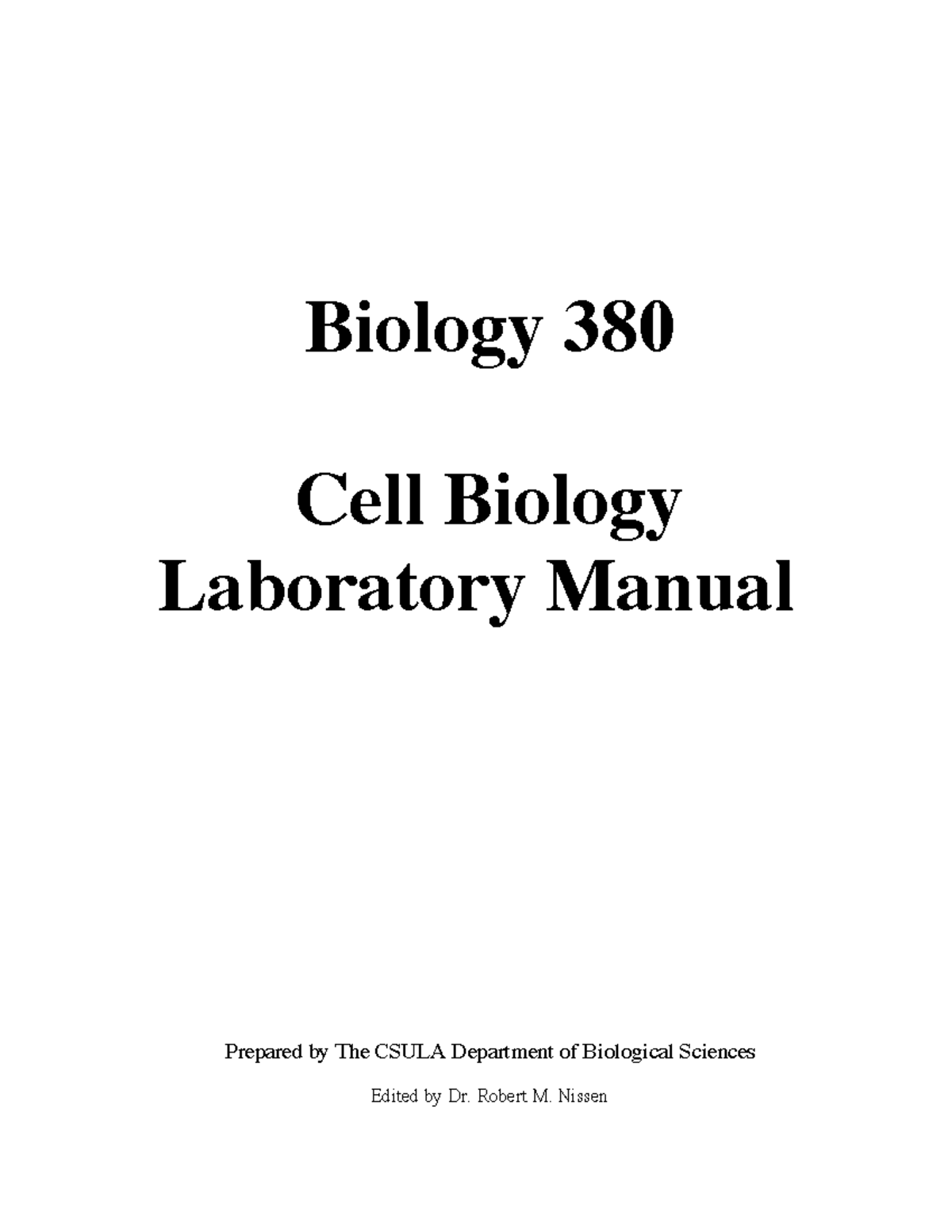 BIOL380Lab Manual SP 10 Biology 380 Cell Biology Laboratory Manual