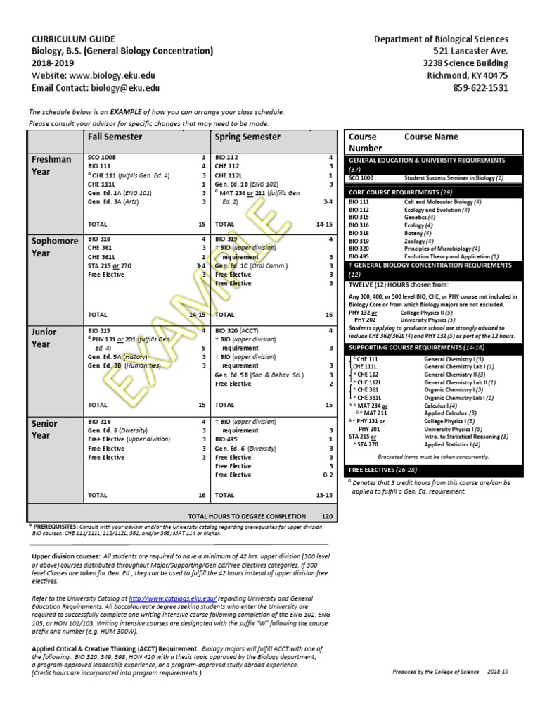 Curriculum Guide Biology, B.S. (General Biology Concentration) 2018