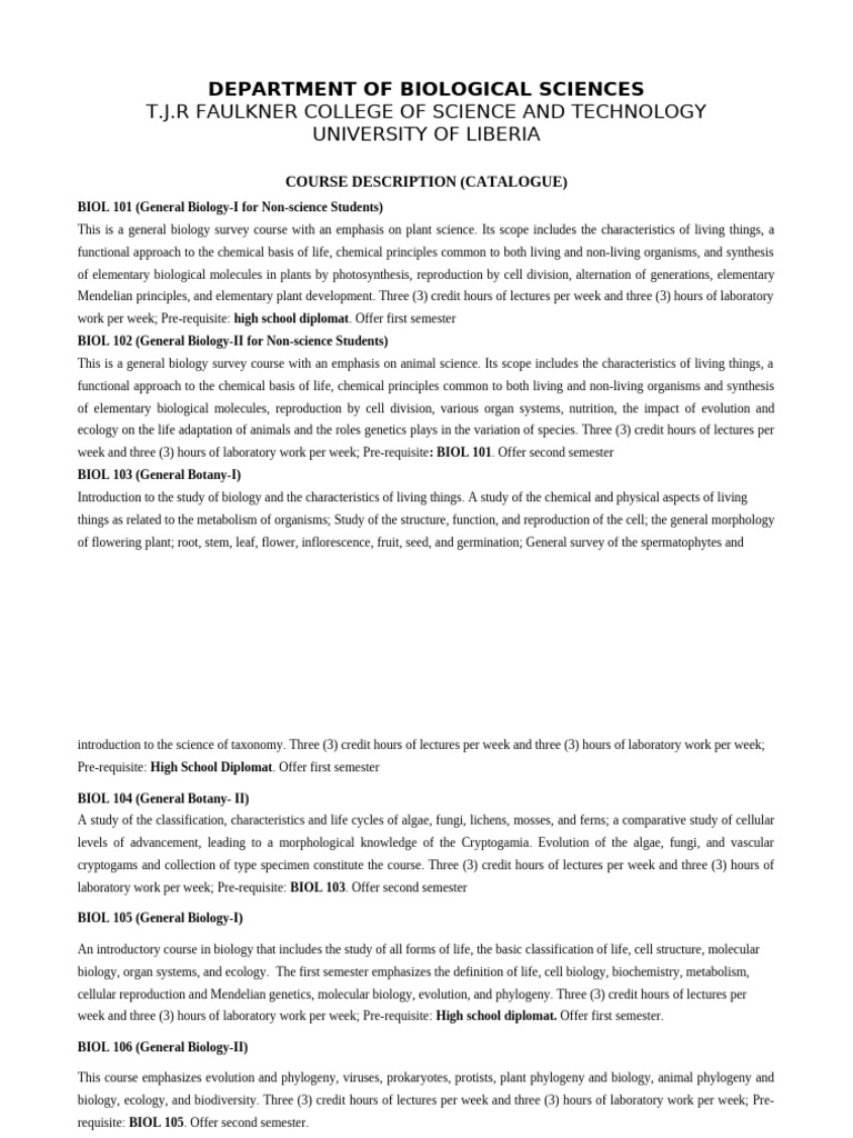 Biology Course Catalog S&T